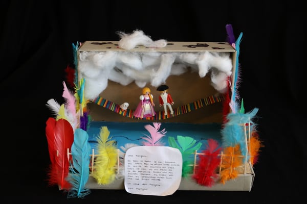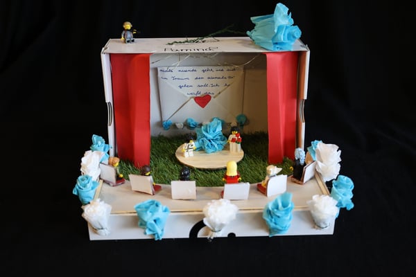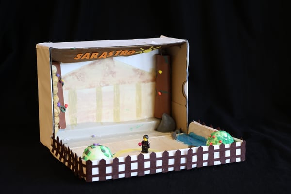 Opernkästen waren früher einmal Schuhkartons. Im Unterricht der 6. Klasse haben sie aber ein ganz neues Leben bekommen. Sie können Szenen einer Oper (hier z.B. der Zauberflöte oder Hänsel und Gretel) darstellen und das Bühnenbild zeigen. Sie können aber auch nur einer einzelnen Person der Oper gewidmet sein (z.B. dem Vogelfänger Papageno aus der Zauberflöte). Dann findet man Steckbriefe, Gegenstände, die zur Person passen und vieles mehr.
