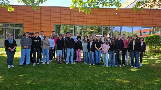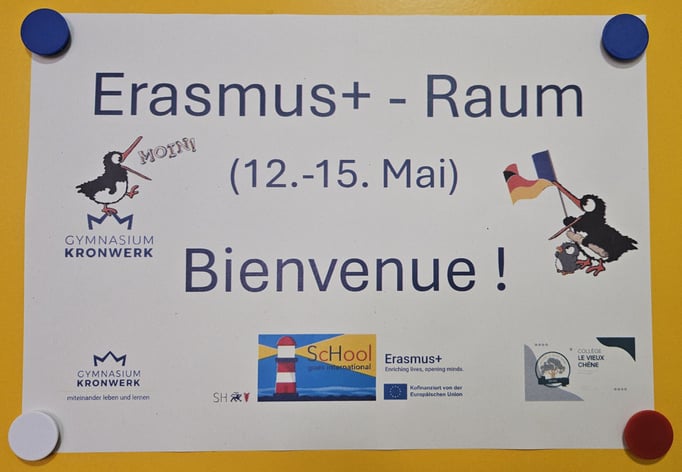 Vom 2.-9. Mai 2025 waren zehn Schüler/-innen der Seconde des Lycée Marguerite Yourcenar mit ihrem Deutschlehrer und einer weiteren Lehrerin zu Besuch, im Rahmen unseres Austausches in Stufe E. Sie waren, wie auch die Lehrkräfte, privat in Familien untergebracht. Mitgereist waren zudem für zwei Wochen zwei weitere Schüler der Terminale (Abschlussklasse) des Lycée, die ebenfalls privat in Familien von einer Schülerin und einem Schüler aus der 9. Klasse untergebracht waren. Neben dem Unterricht haben die deutschen und französischen Schüler/-innen der Stufe E an ihrem gemeinsamen Projekt Freundschaft, Solidarität und Toleranz gearbeitet und beeindruckende Ergebnisse erzielt. Außerdem erkundeten sie die Stadt Rendsburg und führten mit Herrn Petersen und Frau Paap einen Tagesausflug nach Hamburg durch.