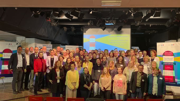 Am 21. Mai kam dann der stellvertretende Schulleiter des Collège Le Vieux Chêne, um mit seiner Schülergruppe am 24. Mai zurückzureisen. Vorher aber konnte er am großen Erasmus+-Netzwerktreffen des Ministeriums mit über 100 eingeladenen Lehrkräften aus ganz Schleswig-Holstein teilnehmen. Auch unsere deutschen und französischen Schüler/-innen haben aktiv teilgenommen und u.a. anhand eines Films, den Mia, Kira, Hanna, Anni, Luisa und Maria (10. Klassen) im Herbst in La Flèche gedreht hatten, die französische Schule und das Projekt als solches vorgestellt.