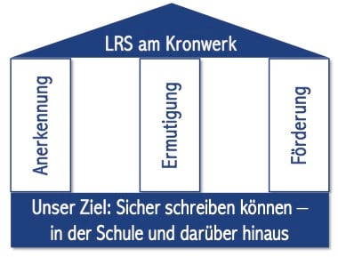 Wird eine Rechtschreibschwäche anerkannt, ist uns am Kronwerk eine enge Zusammenarbeit mit den Eltern besonders wichtig. Das Ziel muss sein, trotz der Rechtschreibschwäche spätestens nach Abschluss der Schullaufbahn sicher schreiben zu können. Dies setzt ein regelmäßiges Training während der Schulzeit voraus. Dabei verfolgen wir drei zentrale Säulen: Anerkennung, Ermutigung und Förderung.