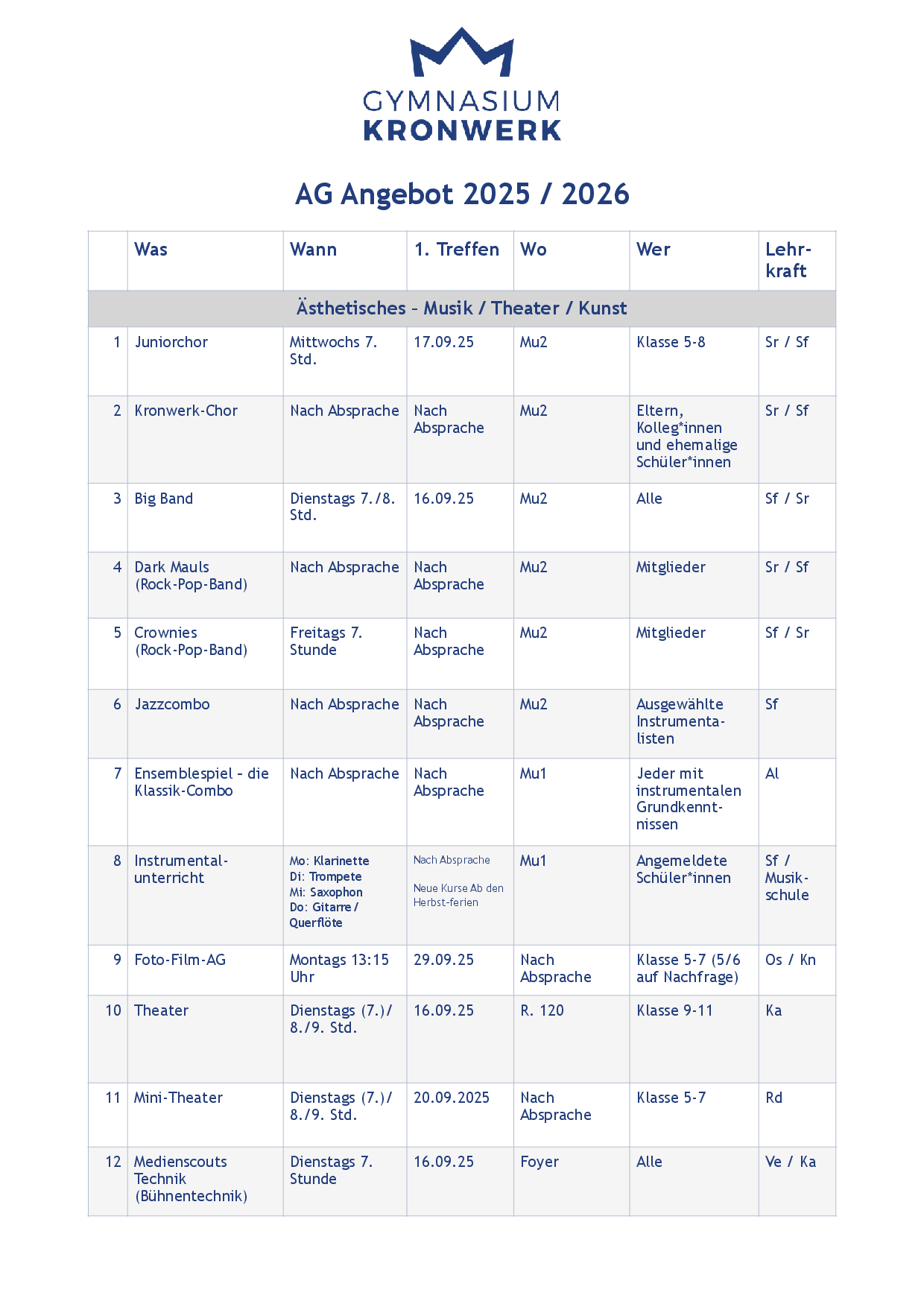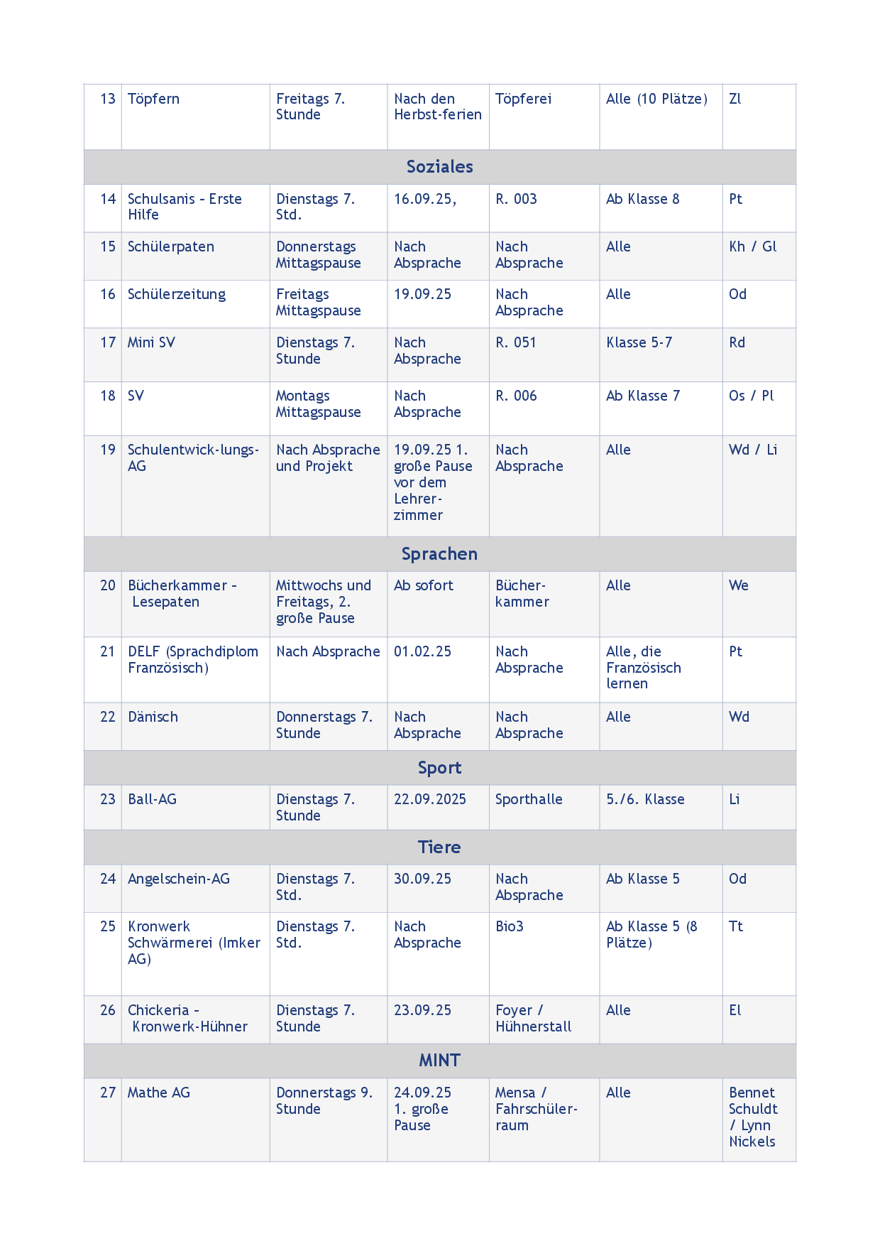 Die folgenden AGs werden bei uns in diesem Schuljahr angeboten.